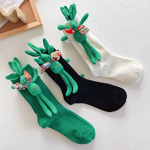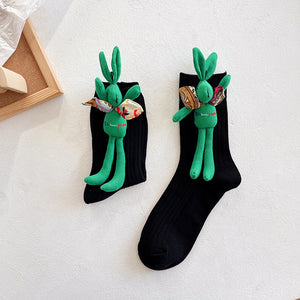 Add a festive and playful touch to your outfit with our Autumn & Winter 3D Green Reindeer Socks.