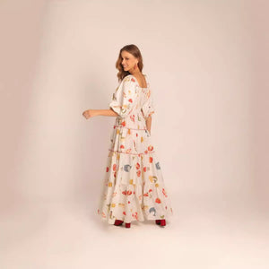 Boho Puff Sleeve Maxi Dress – Square Collar Printed Swing Long Dress