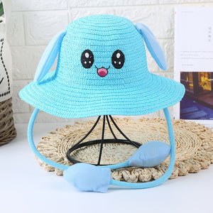 Children’s Rabbit Ear Straw Sun Hat – Moving Ear Cartoon Summer Hat