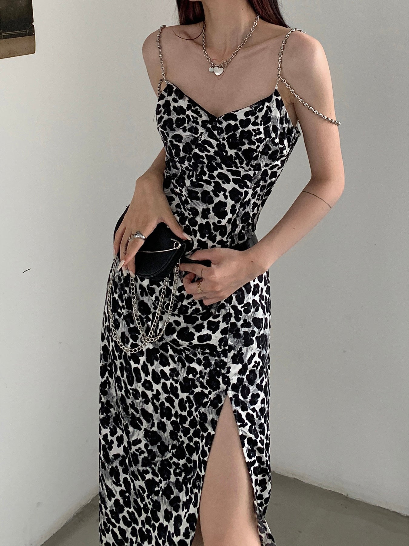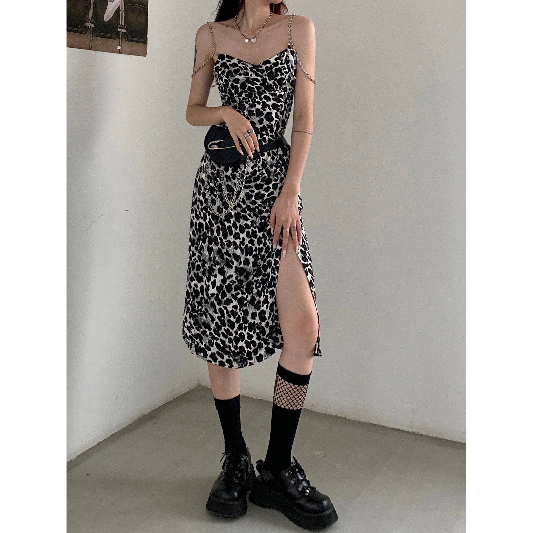 Dark Sexy Leopard Print Suspender Dress