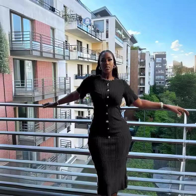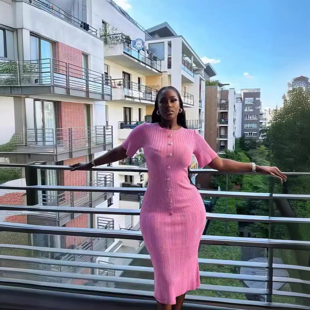 Dress Summer Round Neck Short Sleeves Temperament Knitted Hip Bag