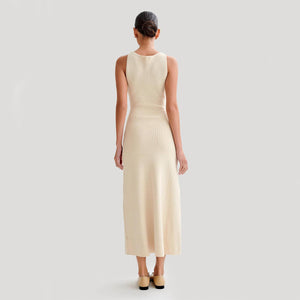 Elegant Knitted Sleeveless Dress With Single Breast Fashion Slim Round Neck Long Dresses Womens Clothing