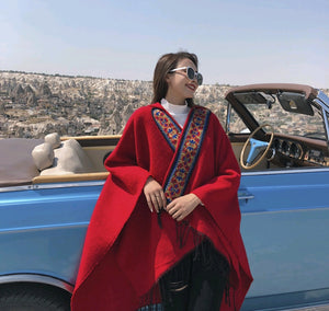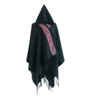 Ethnic Hooded Cloak Shawl – Embroidered Winter Wrap for Travel & Cold Weather