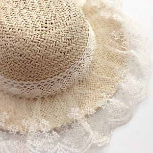Girls’ Lace Straw Sun Hat – Wide Brim Breathable Summer Hat