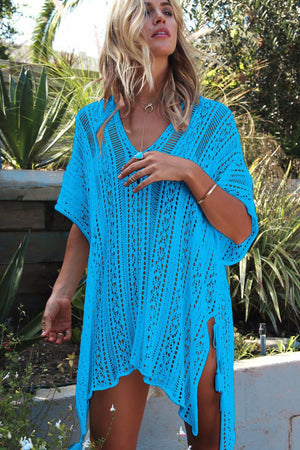 Its loose silhouette, breathable weave, and crochet-inspired texture make it the perfect throw-over for tanning, lounging, or coastal walking — with just the right touch of boho charm.