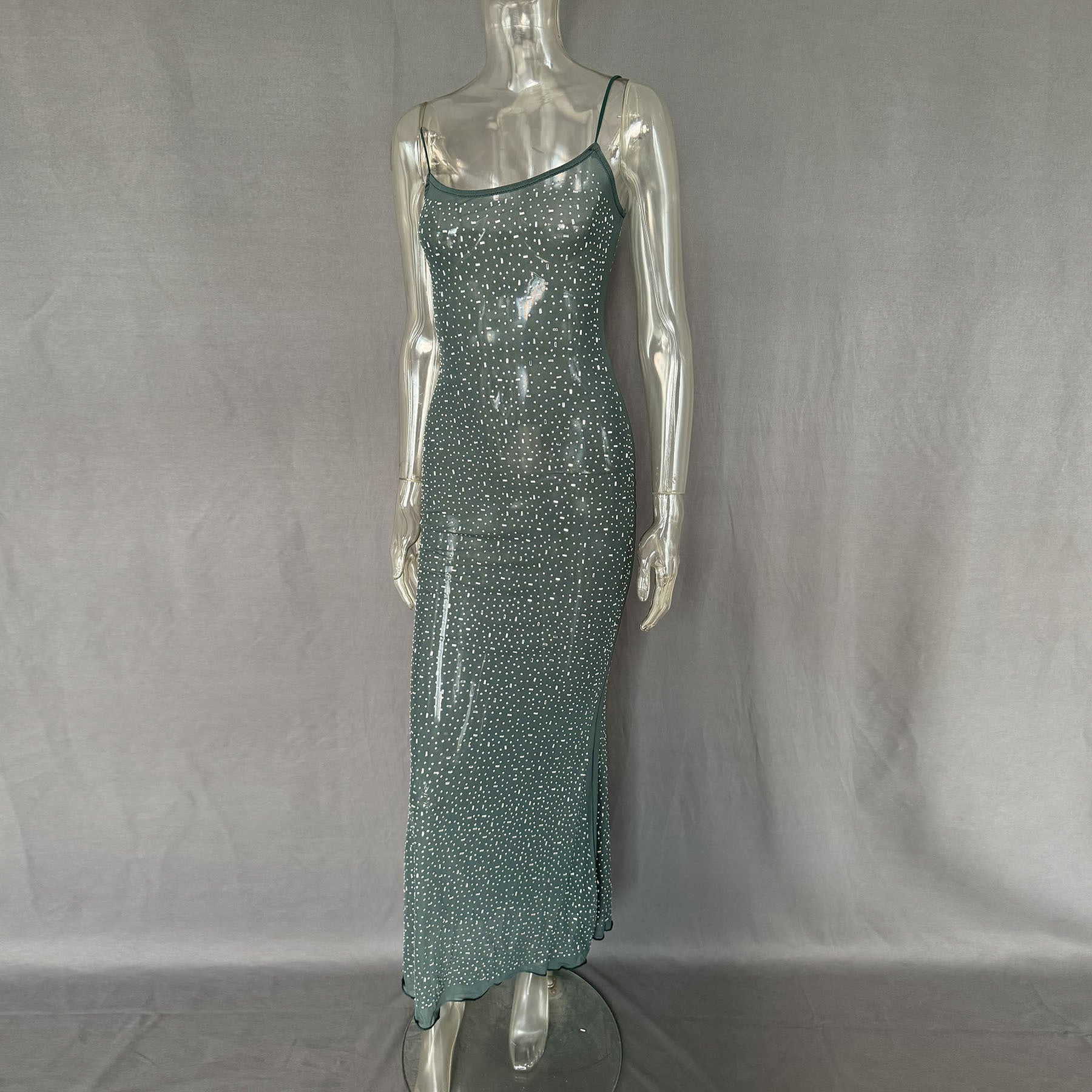Hot Selling Women's Shiny Diamond Sexy Suspender Mermaid Long Dress