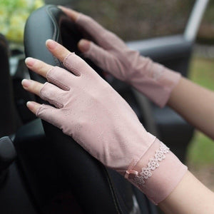 Women’s Lace Half Finger Sunscreen Gloves – Summer Anti-UV Driving Mittens
