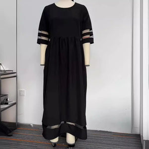 New Hot Sale Five-quarter Sleeve Mesh Patchwork Round Neck Pocket Dress