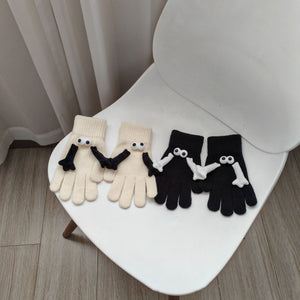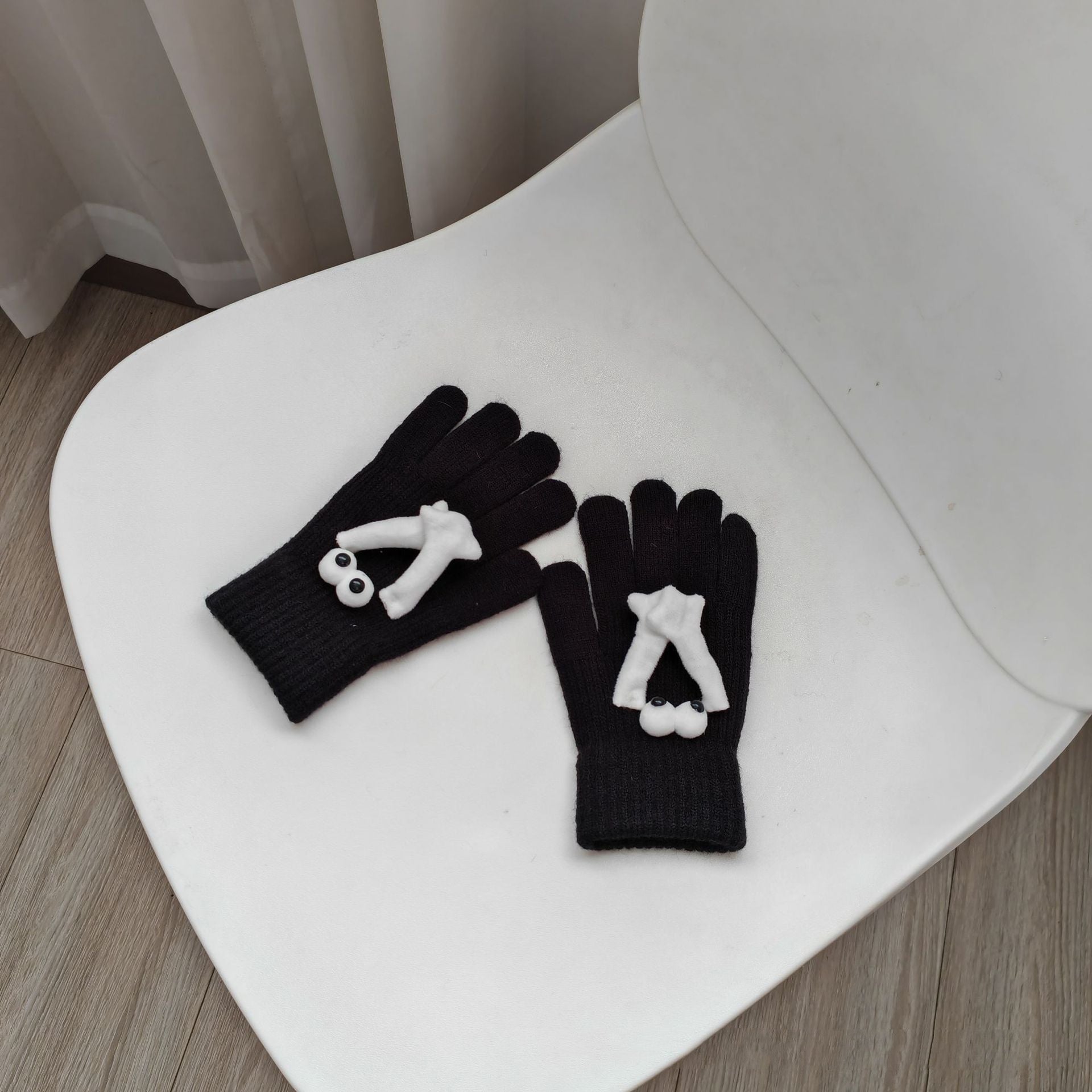 Stay cozy and stylish this winter with our Plush Warm Five-Finger Gloves featuring a playful hand-holding design.