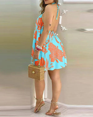 Printed Dress Summer Off-Shoulder Hanging Neck Sleeveless Sexy Dresses Women