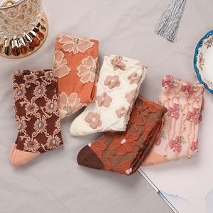 Renaissance Ethnic Floral Mid-Calf Socks – Women’s Cotton Sweet Style