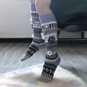 Add a vintage vibe to your winter loungewear with our Retro Jacquard Long Floor Socks.
