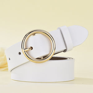 Round Buckle Leather Belt – Classic Cowhide Waistband for Women
