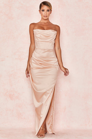 Satin Tube Top Split Knee-Length Dress – Elegant Evening Wear