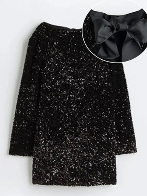 Sequined Back-Bowed Dress Fashion Round Neck Long Sleeve Dresses For Party Daily Shopping Women