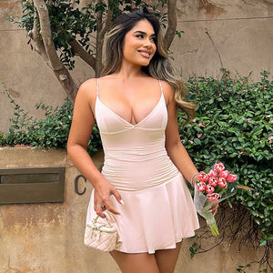 Sexy V-neck Suspender Dress Y2K Fashion Slim Ruffled Short Dresses For Women Clithing