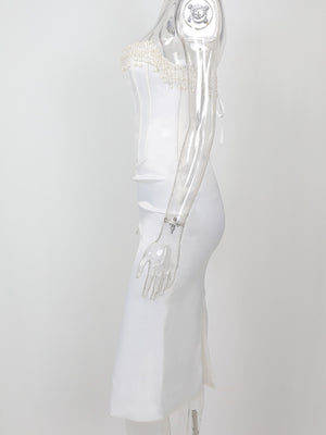 Solid Color Sleeveless Cold-shoulder Pearl Fishbone Dress Skirt Women's Dress