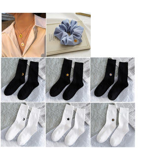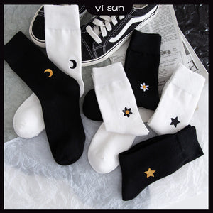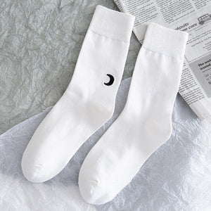 Stars & Moon Embroidered JK Socks – High-Top Cotton Tide Stockings