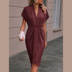 Summer Batwing Sleeve Dress Fashion V-neck Short Sleeve Pleated Dresses Womens Clothing