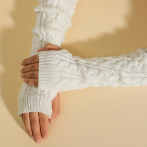 Stay cozy and stylish with our Twist Knit Wool Arm Warmers.