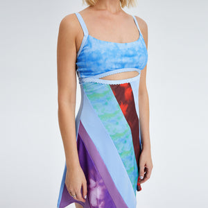 1 × U-Collar Suspender Color Block Mini Dress