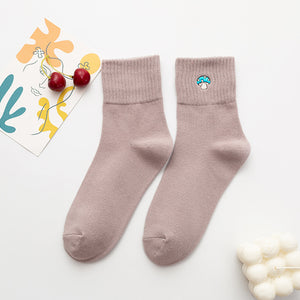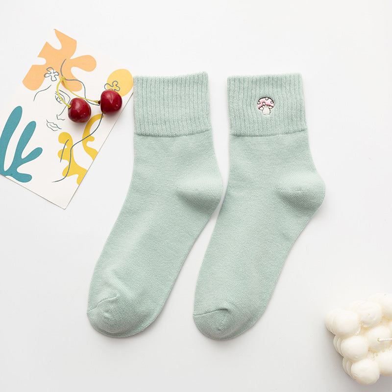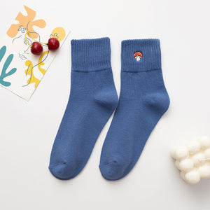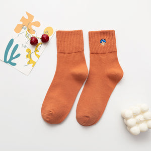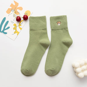 Women’s Cartoon Mushroom Cotton Crew Socks – Mid-Calf Style