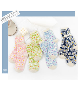 Women’s Daisy Cotton Crew Socks – Cute Floral Mid-Calf