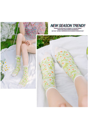 Brighten your wardrobe with our Women’s Daisy Cotton Crew Socks, designed with adorable small daisy flower patterns. Made from soft cotton, these socks are breathable, sweat-absorbent, and perfect for casual wear in spring and beyond.