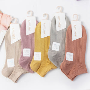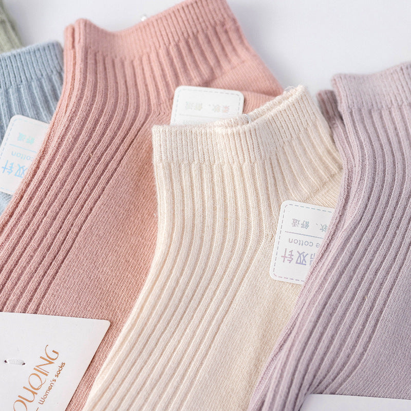 Women’s Double Needle Cotton Ankle Socks – Solid Color Short Casual