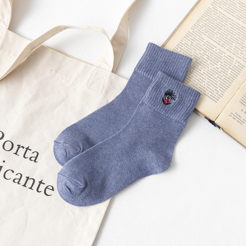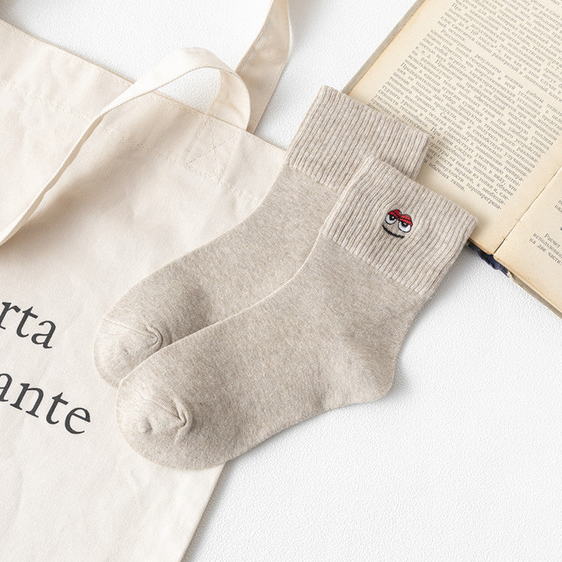 Women’s Embroidered Cotton Tube Socks – Thick Winter Style