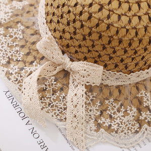 Women’s Lace Bow Straw Sun Hat – Breathable Summer Style