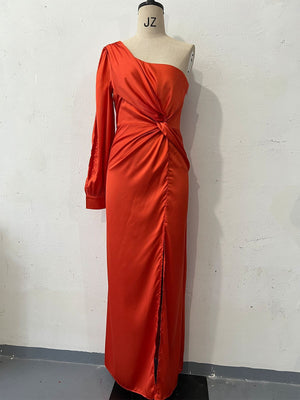 Women's One-shoulder Split Dress Ins Fashion Long-sleeved Slim Long Dresses Party Evening Clothing