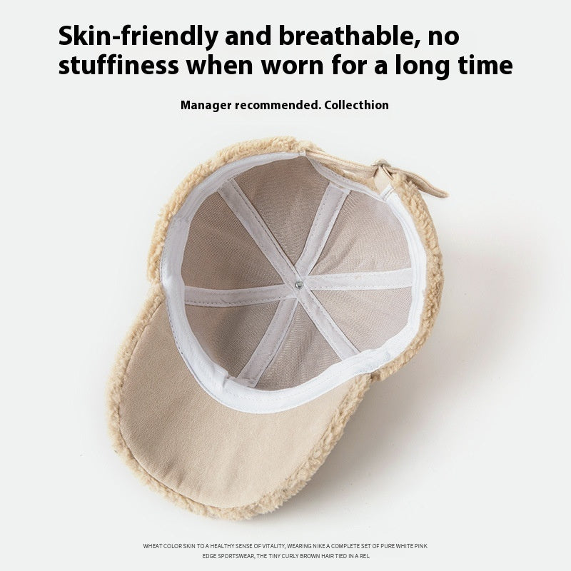 Women’s Plush Lamb Wool Baseball Cap – Winter Warm Peak Hat