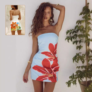 Women's Tube Top Flower Print Slim Sheath Short Dress
