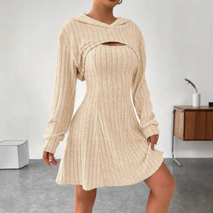 Women's Two-piece Set Dresses New Fashion Fall Winter Hooded Shawl Long-sleeved Vest Short Skirt