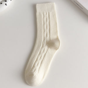 Designed with thick knitted patterns like diamonds, twists, and vertical bars, these socks are perfect for autumn and winter. Made from breathable cotton, they feature sweat-absorbing and deodorizing properties to keep your feet fresh throughout the day.