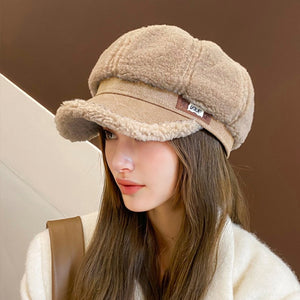 Women’s Woolen Peaked Cap – Thick Warm Winter Hat